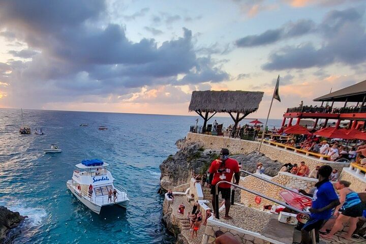 Discover Negril's legendary Seven Mile Beach on this 6-hour tour from Montego Bay or Grand Palladium. After a scenic journey along the northern coastline, arrive at the famous 7-mile stretch of white sand and azure water. Spend time swimming, snorkeling on the reefs, sunbathing or participating in various watersport activities for an additional fee. Stop by Rick's Cafe for lunch and drinks (own expense) while watching the cliff divers. Rick’s Cafe, a popular clifftop restaurant and bar. Have free time at Rick’s Cafe. Get great views of the sunset and cliff divers, swim in the pool, and enjoy food and drinks (own expense), and live music.